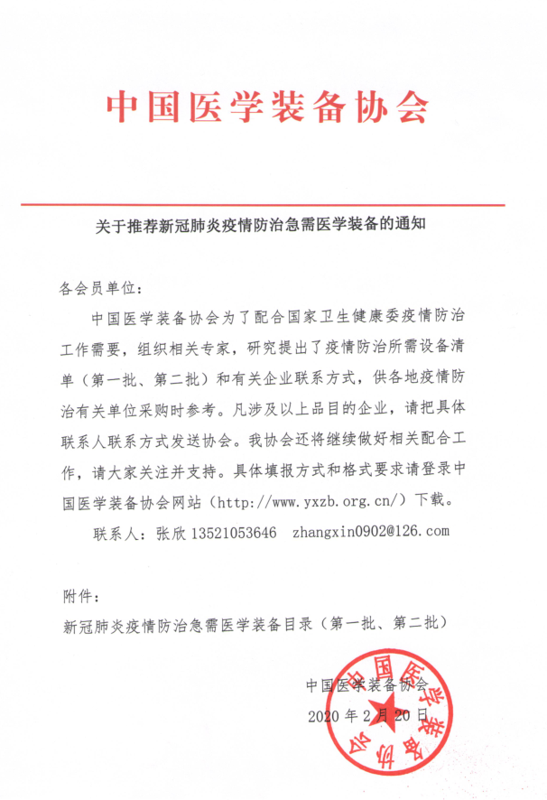 新冠疫情防治急需醫(yī)學(xué)裝備通知