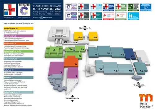 2022年德國(guó)MEDICA于2022年11月14日在德國(guó)杜塞多夫開(kāi)幕。作為全球醫(yī)療器械市場(chǎng)的風(fēng)向標(biāo),德國(guó)MEDICA被公認(rèn)為世界上最大的醫(yī)院及醫(yī)療設(shè)備展覽會(huì),以其不可替代的規(guī)模和影響力位居世界醫(yī)療貿(mào)易展的首位。