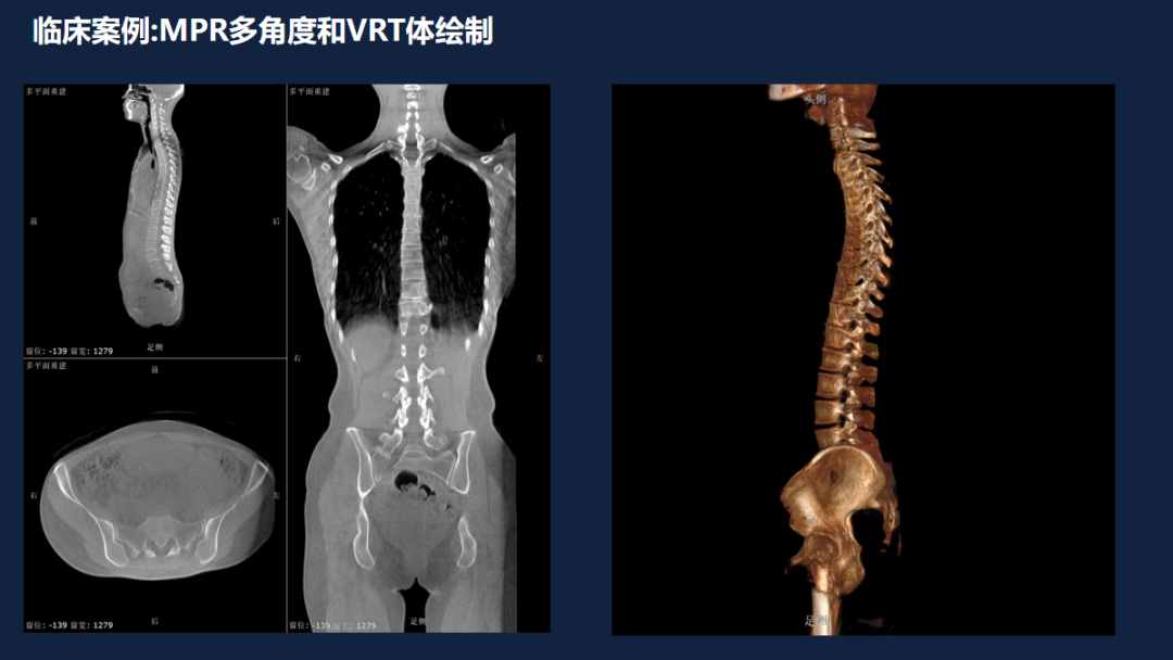 此項技術基于動態數字化X線技術平臺打造,可實現立位三維成像,通過立位旋轉站臺帶動病人緩慢轉動,完成站立位下對檢查部位的多角度掃描并且使用自動校正方式完成三維影像重建,劑量輻射水平遠低于CT;同時也將原本DR的圖像由二維擴展到三維,獲得橫斷、矢狀、冠狀多方位圖像。在精準呈現全身脊柱關節的立位三維攝影的同時更加真實地展示脊柱關節多種疾病的影像學信息,對脊柱關節疾病的相關手術方案規劃、手術隨訪以及進展評估提供更加精準的影像學信息評估。