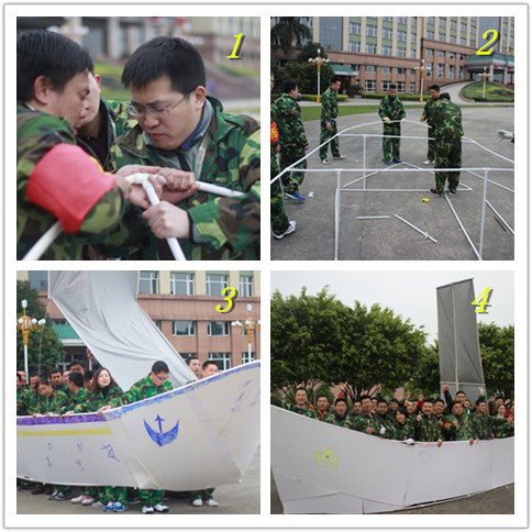 活動(dòng)規(guī)則:用所有的道具在規(guī)定時(shí)間內(nèi)通過(guò)合理分工和策劃親手制作屬于自己的船。所有程序組裝完畢由船長(zhǎng)宣布揚(yáng)帆起航。