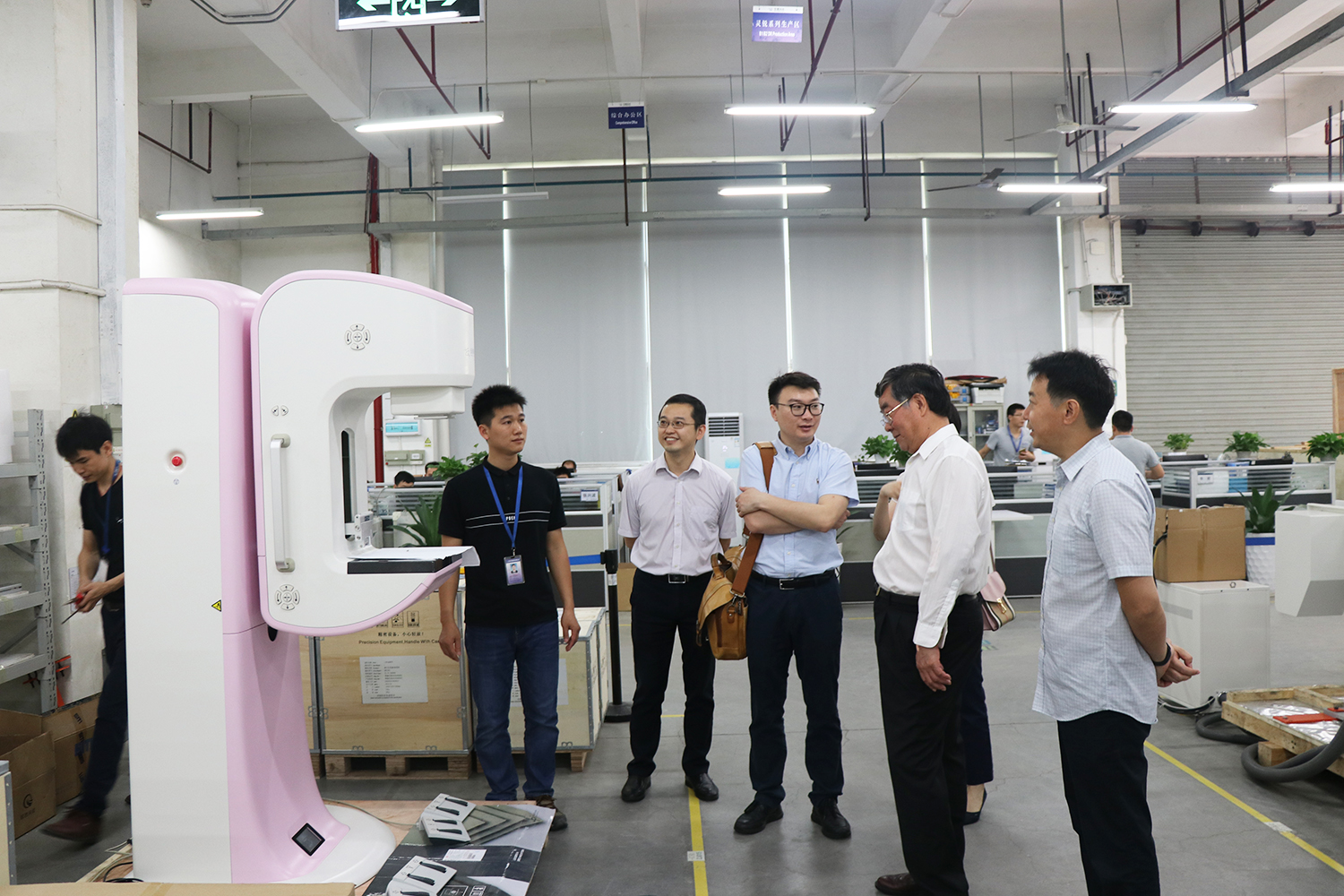 在公司領導的陪同下,中國醫學裝備協會副理事長王東升一行依次聽取了公司介紹、動態DR產品介紹,參觀了公司核心部件生產區及整機生產區。在參觀講解過程中,中國醫學裝備協會副理事長王東升一行對安健科技的產品創新力、豐富的企業文化以及井然有序的生產管理表示肯定和贊賞。